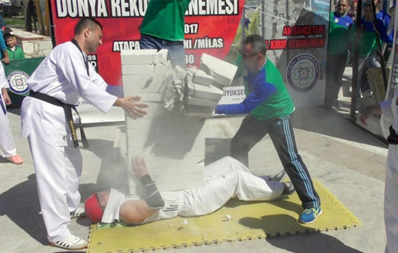 The Fastest time to break 16 concrete blocks on the body (male) is 4.75 seconds, achieved by Ali Bahçetepe (Turkey), … Continue reading