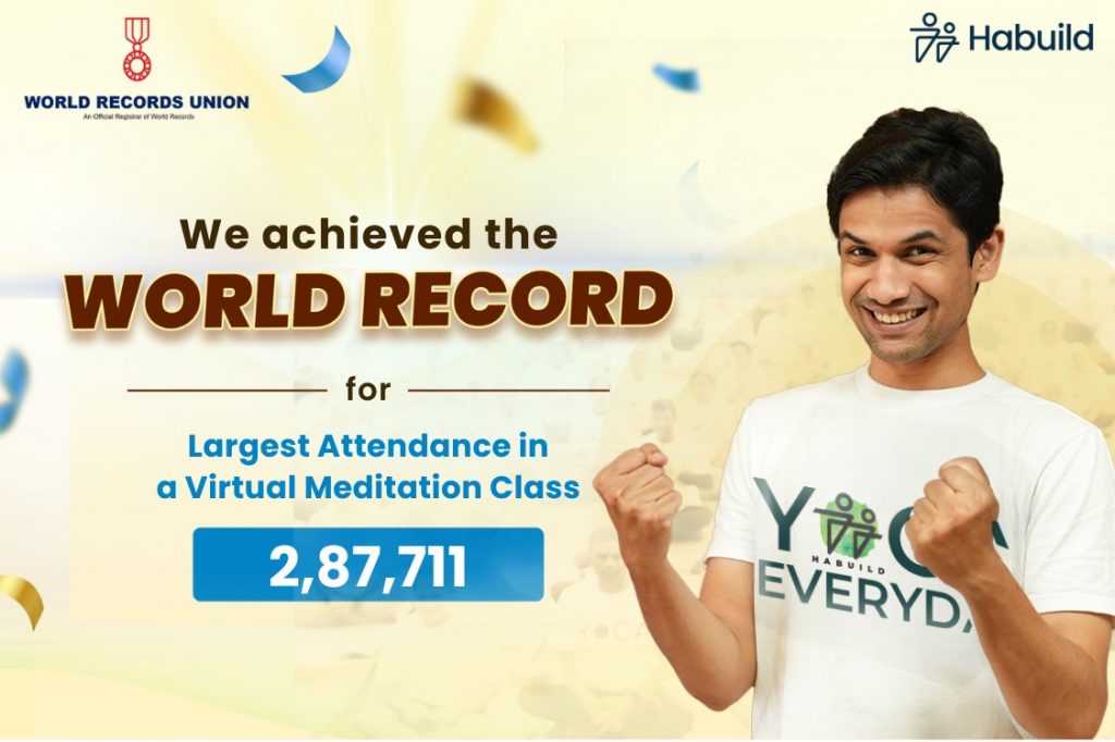 The record for the largest attendance in a virtual meditation class is 287,711 achieved by Habuild on December 21, 2024. The class was conducted virtually on the YouTube channel Saurabh Bothra.