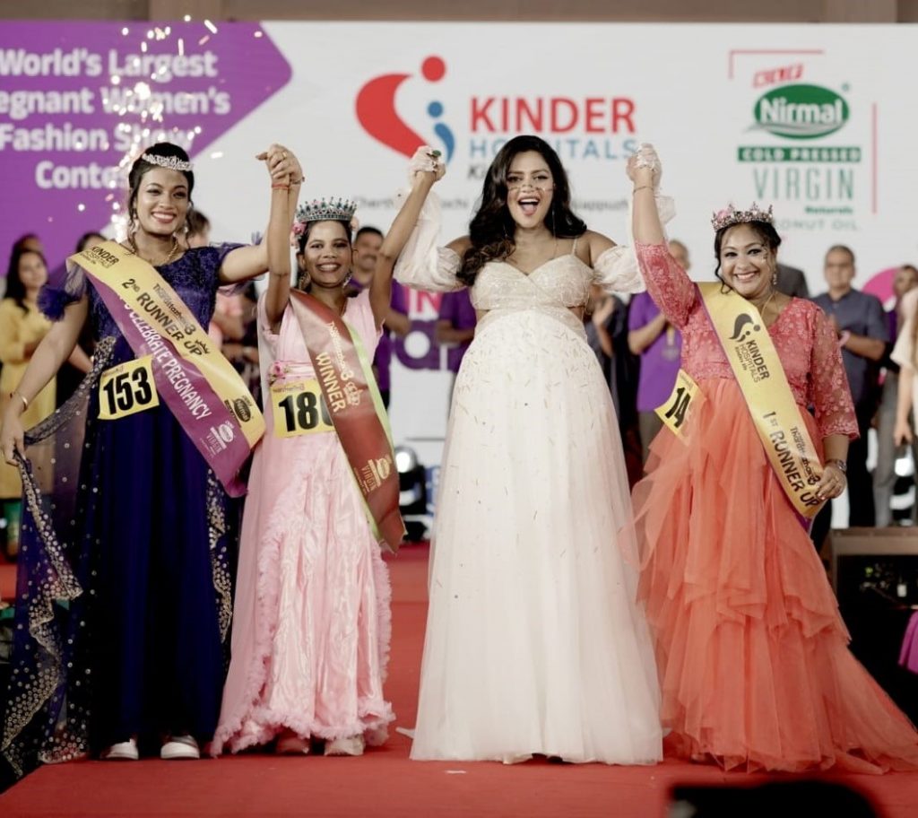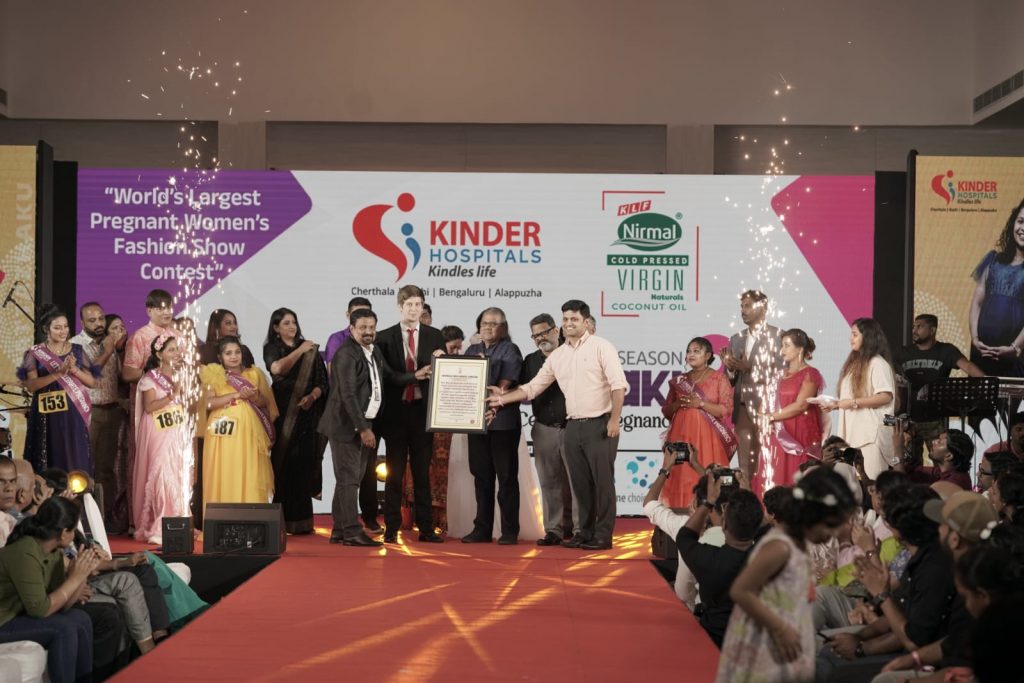 The record for the largest pregnant women fashion show contest consists of 105 participants and was achieved by Kinder Hospitals, Kochi on 12 May 2024 at Kochi, Kerala (India). The fashion contest conducted exclusively for expectant mothers with a view to celebrate and spread awareness about pregnancy and motherhood.