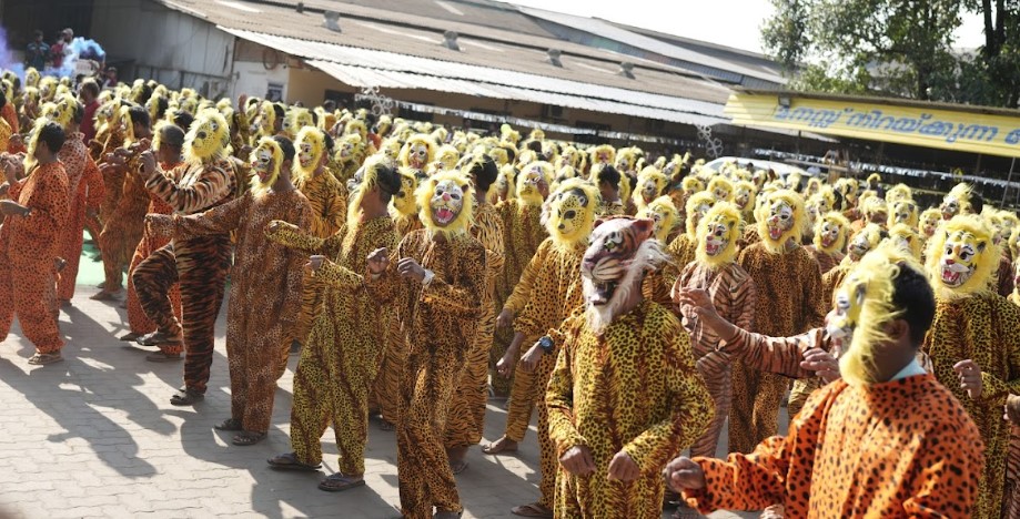 The record for the most number of people performing Leopard Dance (Puli kali) simultaneously at a single venue consists of 357 people and was achieved by Pavizham Healthier Diet Private Limited at Perumbavoor, Ernakulam, Kerala (India) on 26 August 2023